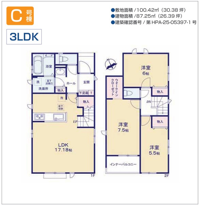 | 築年月(築年数) | 2025年 8月(新築) | 主要採光面 | 南 |