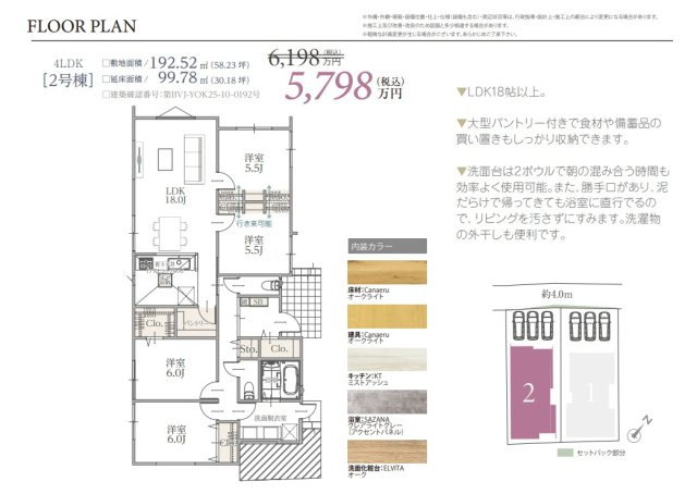 | 建物面積 | 99.78㎡ | 土地面積 | 192.52㎡ |