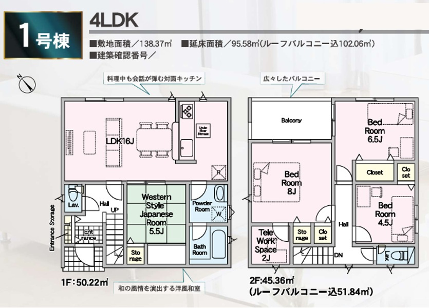 | 建物面積 | 95.58㎡ | 土地面積 | 147.84㎡ |