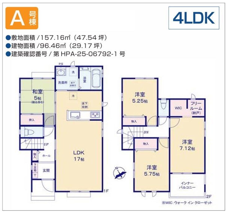 | 建物面積/坪数 | 96.46㎡ / 29.17坪 | 土地面積/坪数 | 157.16㎡ / 47.54坪 |