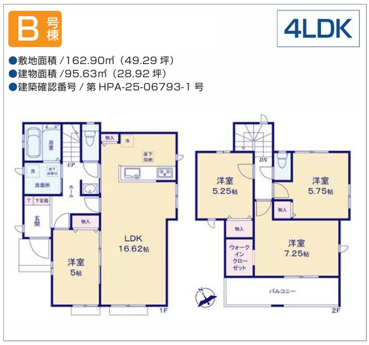 | 建物面積/坪数 | 95.63㎡ / 28.92坪 | 土地面積/坪数 | 162.90㎡ / 49.27坪 |