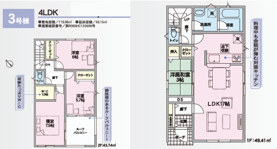 | 建物面積/坪数 | 93.15㎡ / 28.17坪 | 土地面積/坪数 | 119.96㎡ / 36.28坪 |