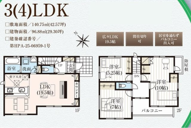 | 建物面積/坪数 | 96.88㎡ / 29.3坪 | 土地面積/坪数 | 140.75㎡ / 42.57坪 |