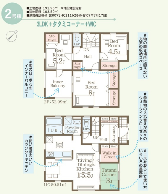 | 建物面積/坪数 | 103.50㎡ / 31.3坪 | 土地面積/坪数 | 191.90㎡ / 58.04坪 |