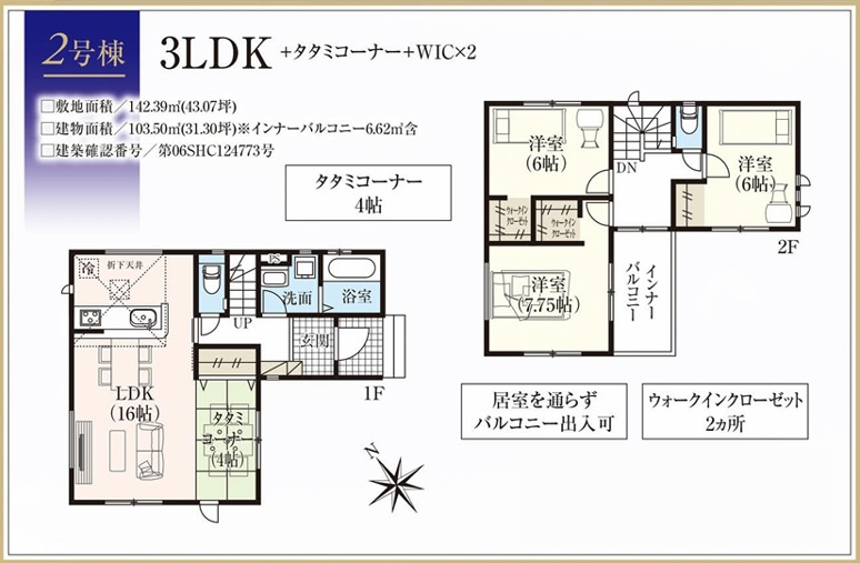 | 建物面積/坪数 | 103.50㎡ / 31.3坪 | 土地面積/坪数 | 130.05㎡ / 39.33坪 |