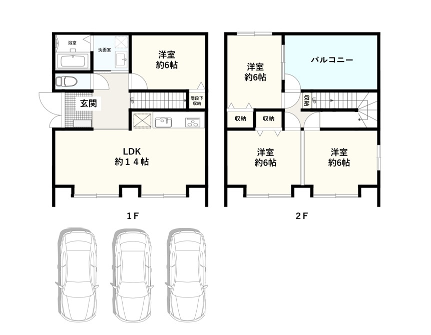 LDK 14.0帖 / 洋室 6.0帖 / 洋室 6.0帖 / 洋室 6.0帖 / |