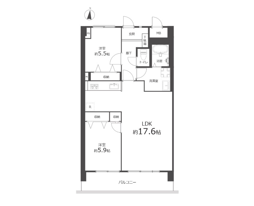 LDK 17.6帖 / 洋室 5.9帖 / 洋室 5.5帖 / |
