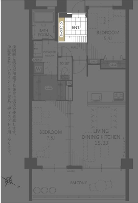LDK 15.3帖 / 洋室 7.3帖 / 洋室 5.4帖 / |