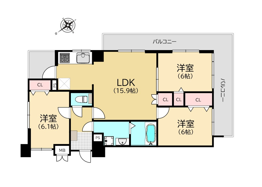 LDK 15.9帖 / 洋室 6.1帖 / 洋室 6.0帖 / 洋室 6.0帖 / |