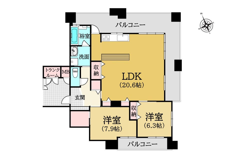 LDK 20.6帖 / 洋室 7.9帖 / 洋室 6.3帖 / |