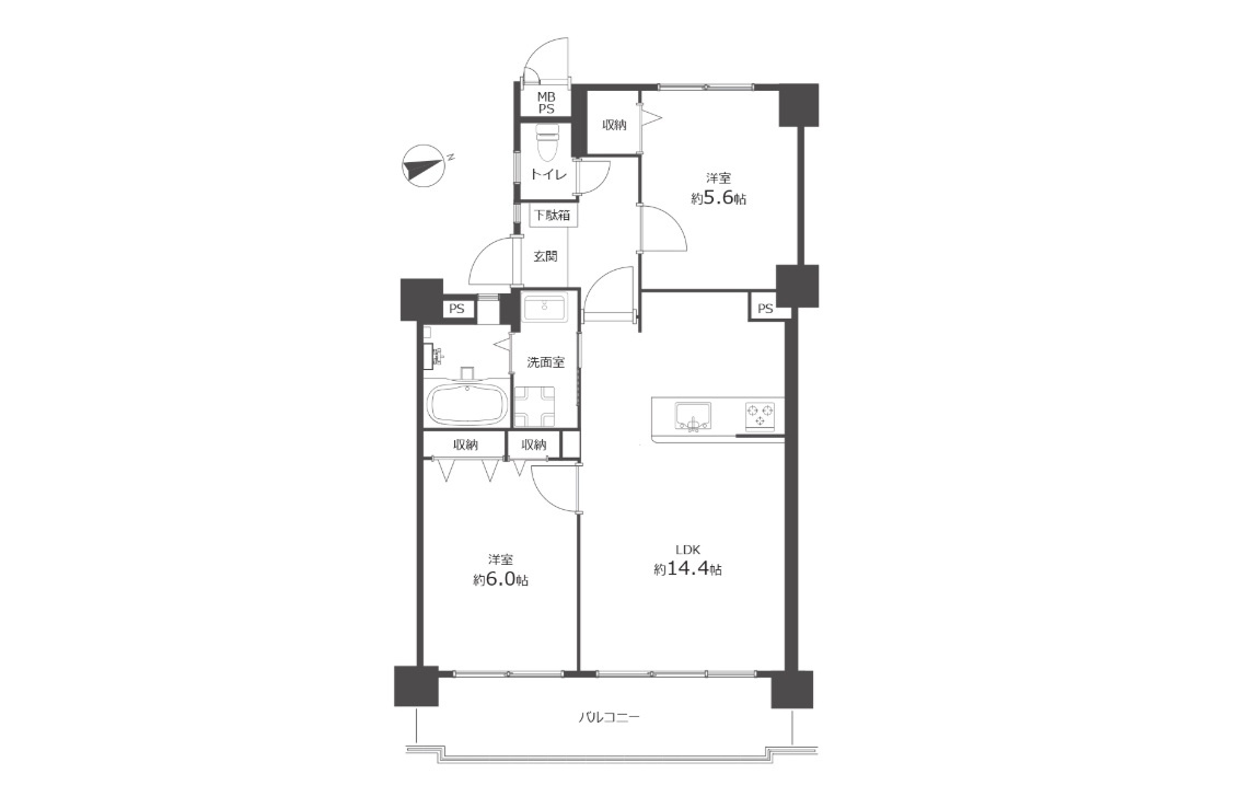 LDK 14.4帖 / 洋室 6.0帖 / 洋室 5.6帖 / |