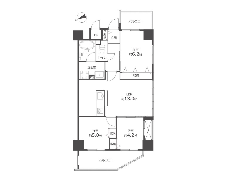 LDK 13.0帖 / 洋室 6.2帖 / 洋室 5.0帖 / 洋室 4.2帖 / |